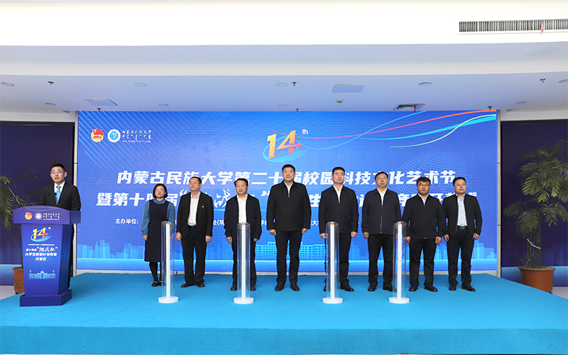 5月9日上午,内蒙古民族大学第二十届校园科技文化艺术节暨第十四届“挑战杯”大学生创业计划竞赛开幕式在图书馆二楼大厅隆重举行。本次活动由我校就业指导处、教务处、研究生处(院)、学生处、科学技术处(内蒙古民族大学科学技术协会)、社会科学处、音乐学院、团委、图书馆联合举办。校党委书记赵东海,校党委副书记王烨辉,校党委委员、副校长裴志利,校党委委员、副校长、统战部部长王百涛出席开幕式。学校相关职能部门负责人,各学院党委书记、副书记、团总支书记、辅导员代表参加开幕式。开幕式由校团委副书记王强主持。