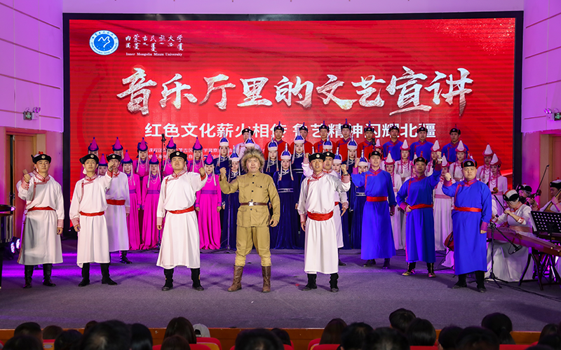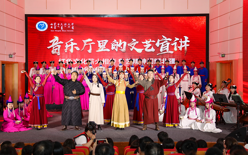 5月8日晚,由内蒙古民族大学党委宣传部、社科联主办,音乐学院承办的“红色文化薪火相传 鲁艺精神闪耀北疆”文艺宣讲在西拉木伦校区逸夫楼音乐厅举行。自治区社科联党组书记、主席乌恩奇,内蒙古民族大学党委书记、自治区社科联副主席赵东海,内蒙古民族大学党委副书记王烨辉,自治区社科联党组成员、秘书长朱浪,内蒙古大学马克思主义学院副院长傅锁根,自治区社科联社科普及部部长韩伟林,通辽市委宣传部副部长梁威,“兴长齐白”“兴呼通”智库联盟成员单位、蒙东地区“双子星座”(赤峰、通辽)社科联领导专家以及内蒙古民族大学师生代表共260余人共同聆听。