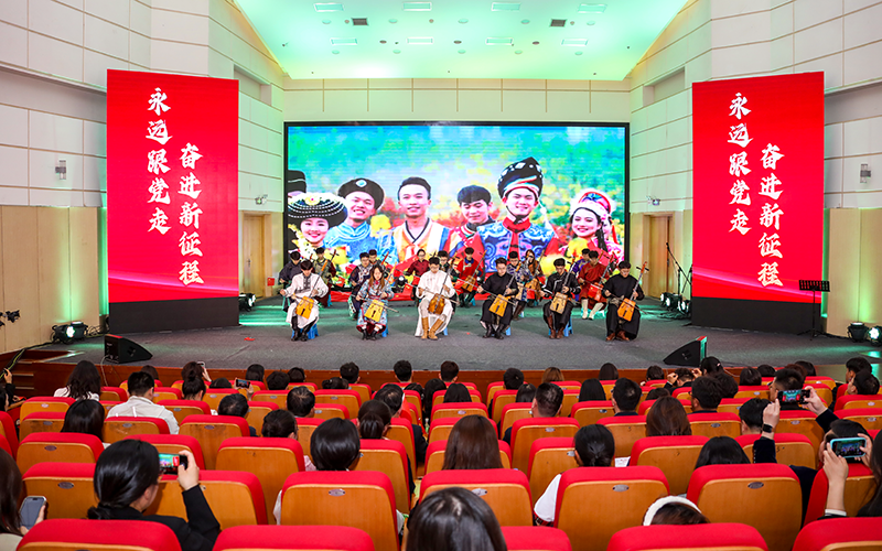 与会领导和师生代表共同观看了“青春建功新时代,挺膺担当新征程”主题文艺汇演。整场演出主题鲜明、内容丰富、激情四射,同学们在热情活泼的舞蹈中致敬青春,在高亢激昂的歌声中展示中国青年爱党、爱国、爱人民的赤忱追求,在声情并茂的朗诵中对党许下青春的誓言,生动展现了我校青年昂扬向上、踔厉奋发的精神面貌,表达了新时代青年们“青春建功新时代,挺膺担当新征程”的信心和决心。