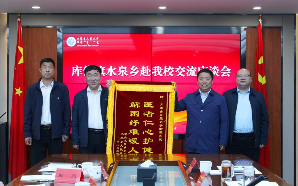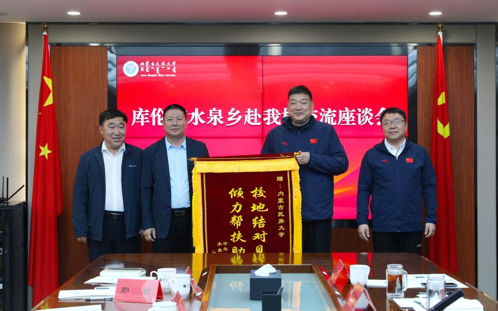 赵东海代表学校热烈欢迎白青山一行来校开展回访活动,对库伦旗水泉乡给予那顺同志工作的关心和支持表示感谢,并简要介绍了学校的基本办学情况及助力库伦旗经济社会发展、帮扶水泉乡坤都岭村乡村振兴等工作情况。他强调,内蒙古民族大学作为扎根通辽市办学的一所高校,有责任、有义务发挥教育、科技、人才优势,在推动地方基层党建、产业发展、改善民生等方面不断做出应有贡献。他表示,学校将立足自身优势,聚焦帮扶点的实际发展需求,创新方式方法,把帮扶工作做实、做细、做强,让更多人民群众切实感受到帮扶带来的改变和成效。