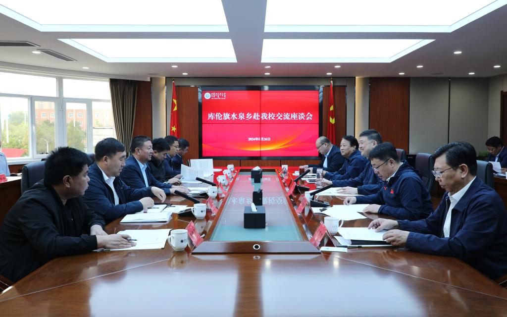 5月26日上午,库伦旗政协主席白青山、水泉乡党委书记刘国辉一行来我校开展定点帮扶回访活动并召开交流座谈会。校党委书记赵东海,校党委副书记、校长孟祥宏,校党委委员、副校长裴志利,校党委委员、副校长、统战部部长王百涛,校党委委员、宣传部部长、党政办公室主任孙林出席座谈会。座谈会由孟祥宏主持。