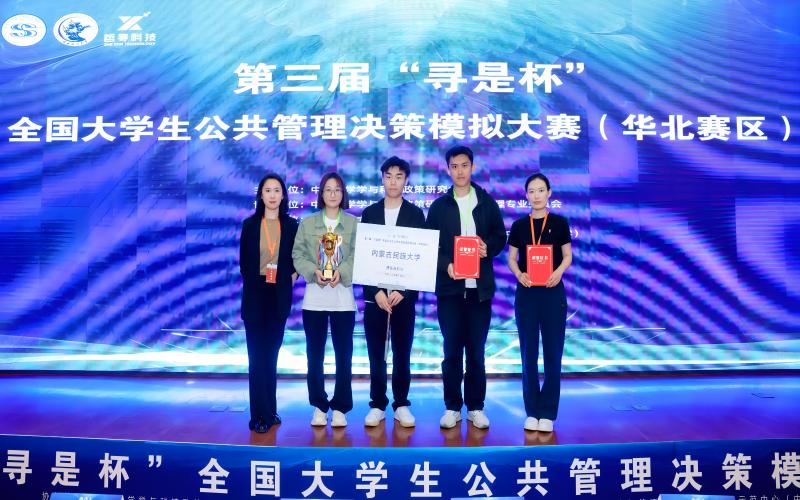 5月25-26日,由中国科学学与科技政策研究会主办、中央财经大学政府管理学院承办的第三届“寻是杯”全国大学生公共管理决策模拟大赛(华北赛区)在中央财经大学举行,来自北京、天津、河北、内蒙古、山西五省市区的39所高校40支队伍参加比赛。由我校管理学院行政管理教研室主任周轶楠、专业教师赵冰莹担任指导教师,行政管理专业学生于悦、周志鹏、崔贺组建的参赛队伍荣获了华北赛区二等奖。