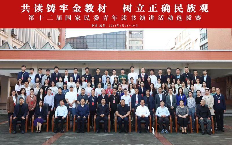 近日,“共读铸牢金教材 树立正确民族观”第十二届国家民委青年读书演讲活动选拔赛在西南民族大学举行。比赛共有来自国家民委各机关部门、直属单位和13所民族(地区)高校的56名青年选手参加。马克思主义学院教师代宏丽、外国语学院教师黄鹏飞代表我校参赛并获得三等奖。