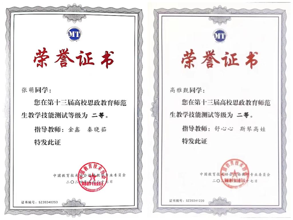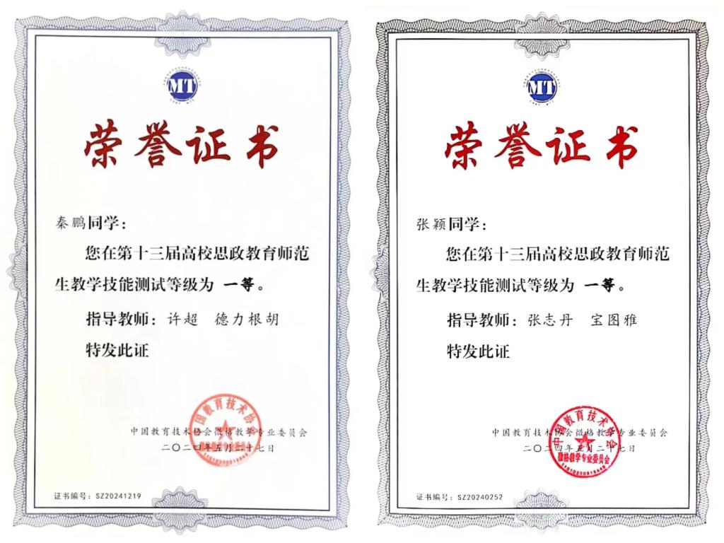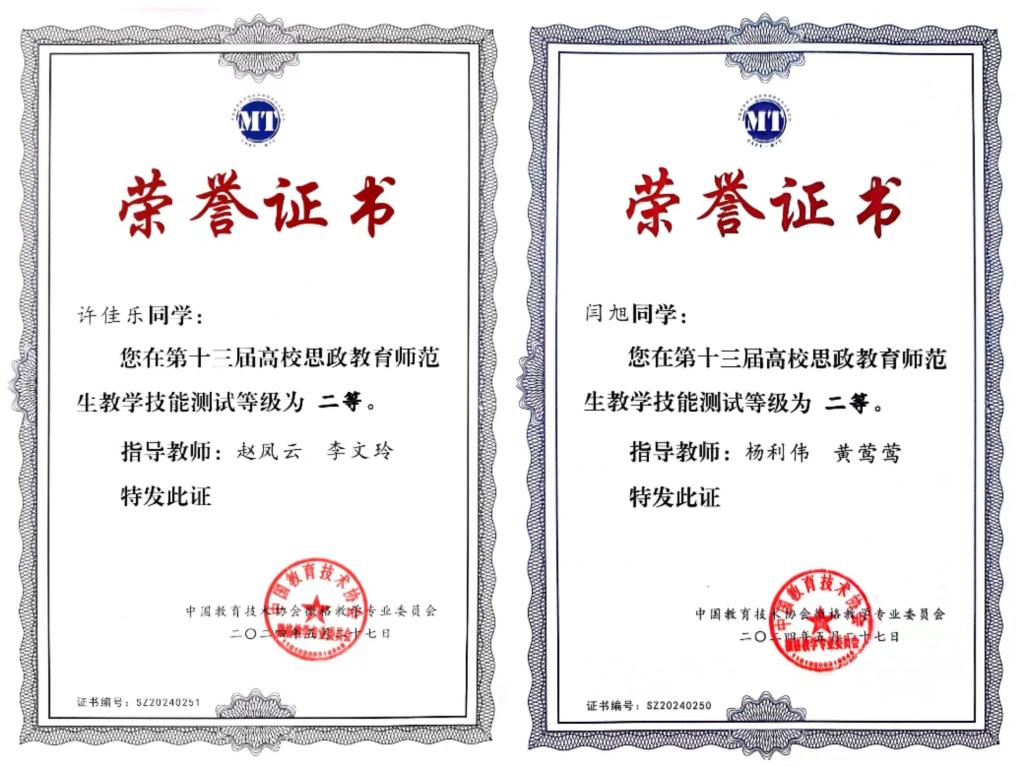 比赛包括教学片段设计测试和现场教学技能测试两个部分,我校参赛的六名选手全部获奖。其中,2022级学科教学(思政)专业研究生秦鹏、2021级思想政治教育专业本科生张颖荣获一等奖,2022级学科教学(思政)专业研究生高雅觐、2021级思想政治教育专业本科生张萌、许佳乐、闫旭荣获二等奖,创下我校在此项活动中历史最好成绩。