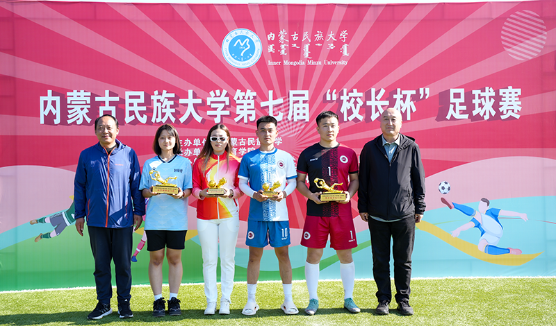 闭幕式上,比赛裁判长娄晓斌公布比赛成绩。男子组比赛中,文学与新闻传播学院获得冠军,音乐学院获得亚军,临床医学院获得季军;女子组比赛中,美术与设计学院获得冠军,临床医学院获得亚军,国际教育学院获得季军。文学与新闻传播学院苏雅拉被评为男子最佳射手,布仁图被评为男子最佳门将;国际教育学院阿娜斯塔西娅被评为女子最佳射手,美术与设计学院哈尔贵被评为女子最佳门将;包永富等15名裁判员获得优秀裁判员称号。