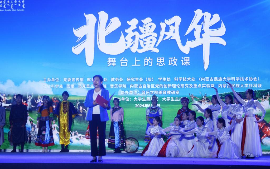 《北疆风华——舞台上的思政课》以思政课堂和舞蹈表演穿插演出的形式开展,马克思主义学院副院长舒心心担任思政课主讲人,将德育美育融入其中,充分体现了我校“大思政”育人格局建设的丰硕成果,激励广大师生感党恩、听党话、跟党走,为完成好习近平总书记交给内蒙古的“两件大事”贡献力量,奋力书写为中国式现代化挺膺担当的青春篇章。