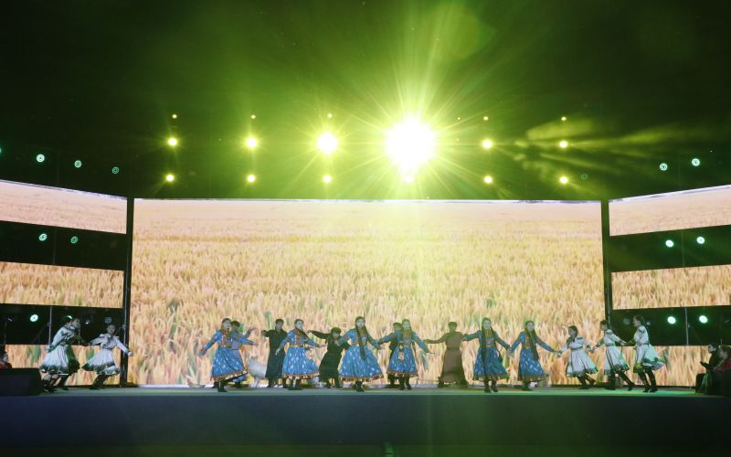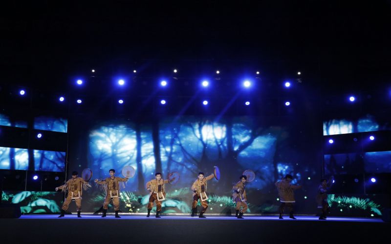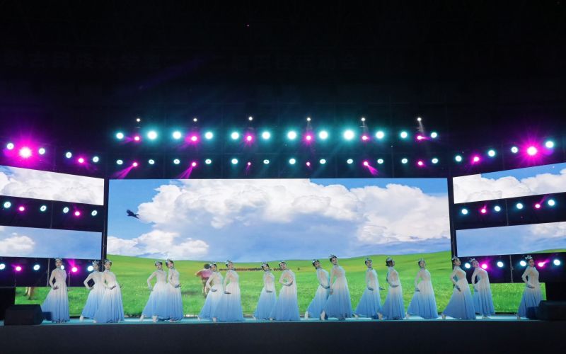 《额尔古纳河》《鹿灵》《鲁日格勒》《敖鲁古雅》等舞蹈展现了鄂伦春、达斡尔、鄂温克等少数民族在党的领导下,与戍边战士共同建设我国北方重要生态安全屏障、筑牢祖国北疆安全稳定屏障的动人故事;《赛马》《欢腾那达慕》《顶碗舞》等舞蹈再现了草原那达慕大会的盛况;舞蹈《收获》表现了内蒙古建设国家重要农畜产品生产基地所取得的重大成就;舞蹈《天鹅》讲述了乌梁素海生态环境持续改善,吸引来天鹅等大量候鸟争相栖息的美丽故事;舞蹈《齐心协力建包钢》展现了各族儿女同舟共济开启新中国少数民族地区工业发展的感人故事;舞蹈《蒙古马》完美演绎了“吃苦耐劳,一往无前,不达目的决不罢休”的蒙古马精神;大学生舞蹈团同学带来的《俄罗斯舞》让在场师生体会到了口岸城市满洲里向北开放所体现的异域风情;《团结欢庆》《心中的查干》等舞蹈表现了我校各族学生自觉铸牢中华民族共同体意识,手足相亲、守望相助,共同建设美好家园的情怀。
