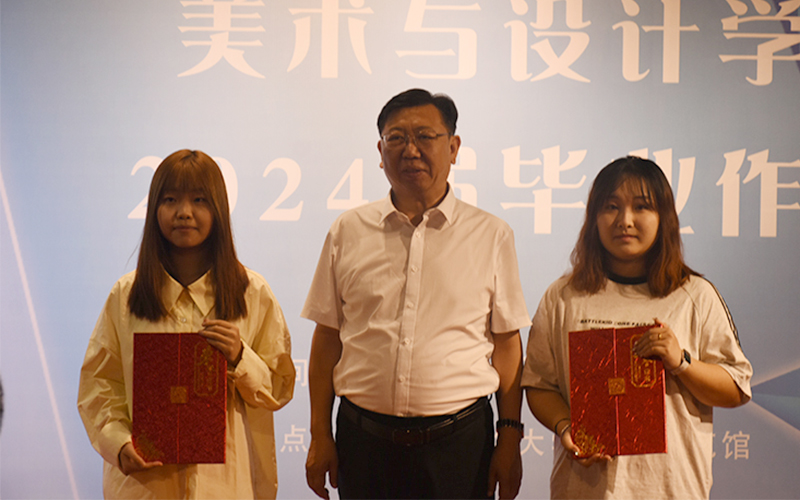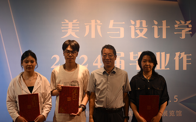 美术与设计学院院长王永波公布了获奖学生名单,校领导为学生颁奖。