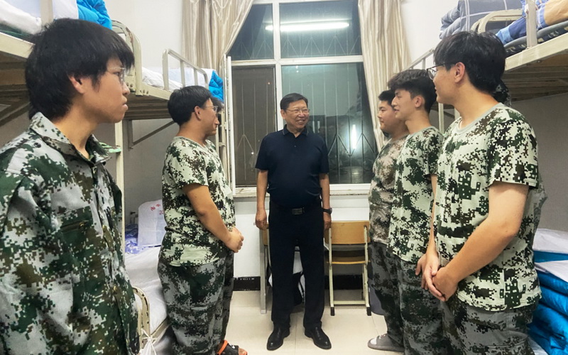 孟祥宏对新生的到来表示热烈欢迎,详细询问了新生们的籍贯、来校方式、家庭情况和入学后的适应情况等。他希望同学们在军训期间认真完成各项军训科目,通过学习国防知识、参加军事训练等活动,进一步增强国防意识和安全意识,感受民大悠久的历史和深厚的底蕴,为未来的学习和生活奠定坚实基础。他还从学生成长的角度出发,鼓励同学们要珍惜大学时光,勤奋学习,勇于探索,为未来的职业生涯与人生道路做好规划。