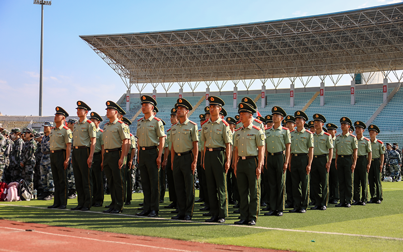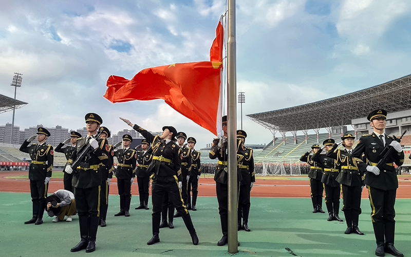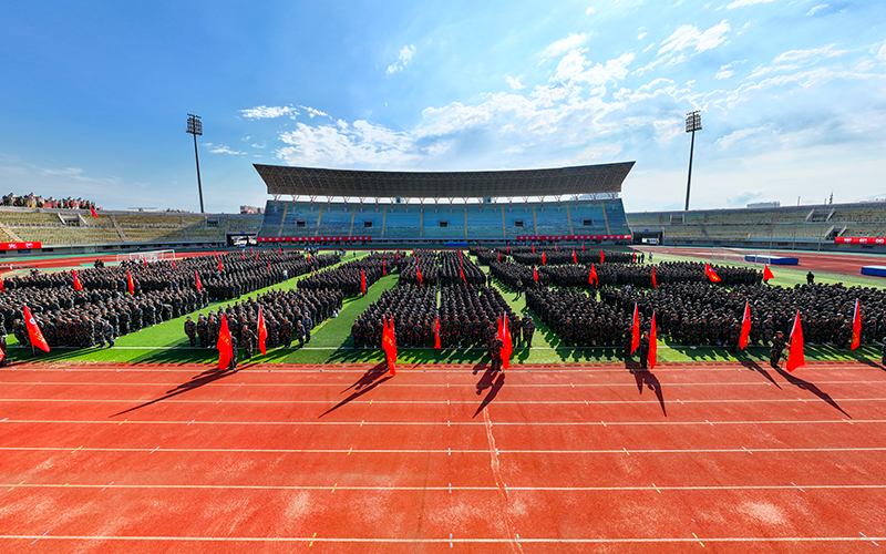 青春似火,军训如歌。8月30日上午,在科尔沁体育中心运动场,五千余名新生身着青春戎装隆重集会。内蒙古民族大学2024级新生军训动员大会在庄严的国歌声中拉开帷幕。校党委副书记王烨辉,校党委委员、副校长王百涛,承训部队、武警通辽支队中校参谋长王永达,武警通辽支队教导队队长张世武出席动员大会。大会由学生处(党委学生工作部、武装部)处长尚丹主持。