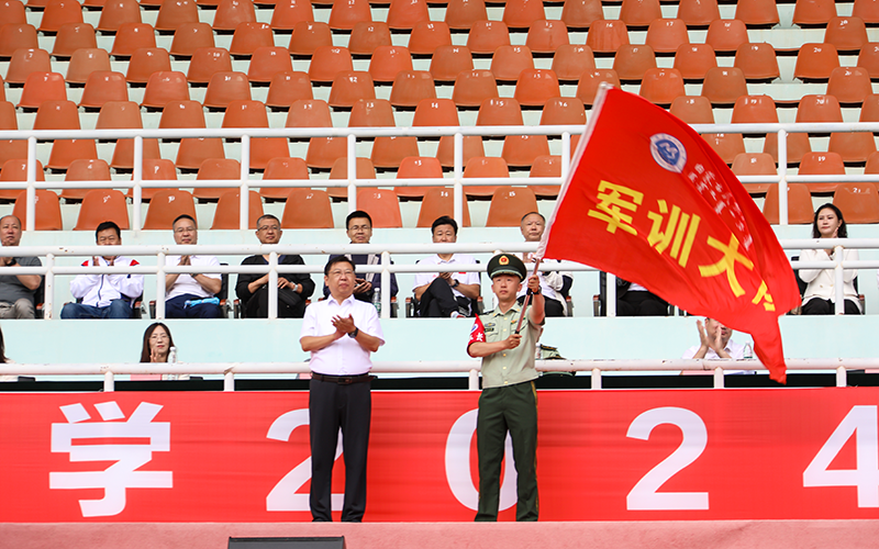 军歌激昂,号角嘹亮,王百涛为军训大队授旗。高扬的旗帜,不仅是军训的象征,更是同学们青春誓言的见证。