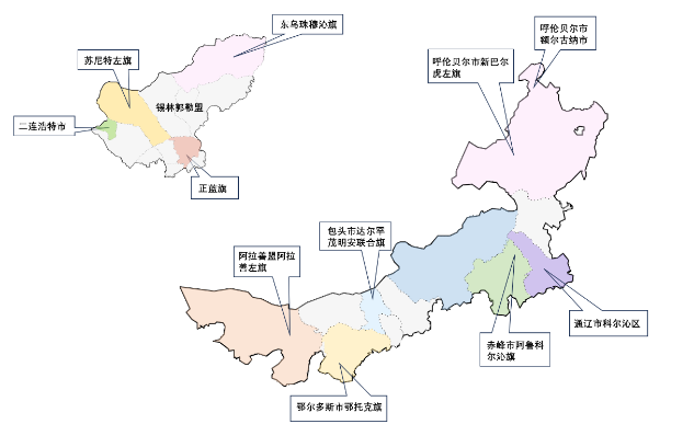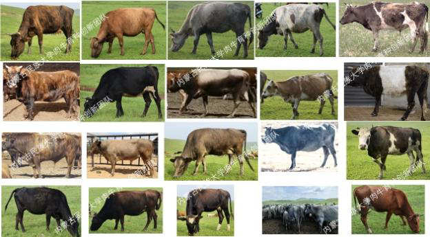 图2 蒙古牛及杂交育成群体采样点信息及部分蒙古牛个体的体貌特征