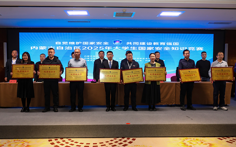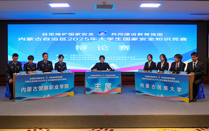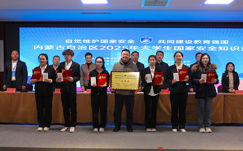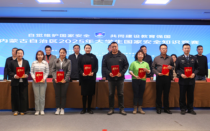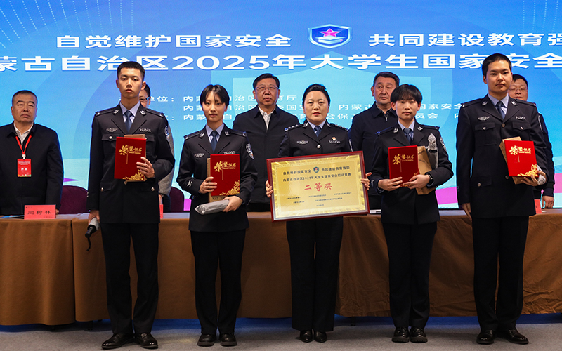 此次知识竞赛,邀请中国人民公安大学毛欣娟教授,自治区相关单位和通辽市公安局专业人员担任评委。全区高校在校内预赛的基础上,共选派了44支学校代表队232名学生参加自治区复赛。经过“机考复赛”“知识竞赛”“情景剧表演”“命题辩论”四个环节的激烈角逐,最终我校喜获“全区2025年大学生国家安全知识竞赛”一等奖,内蒙古警察职业学院、包头师范学院分别获得二、三等奖,内蒙古大学等5所学校获得优秀奖,内蒙古工业大学等8所学校获得优秀组织奖,呼斯勒等8名教师获得“优秀指导教师”荣誉称号,韩欣雨等44名学生获得“国家安全知识竞赛先进个人”荣誉称号。
