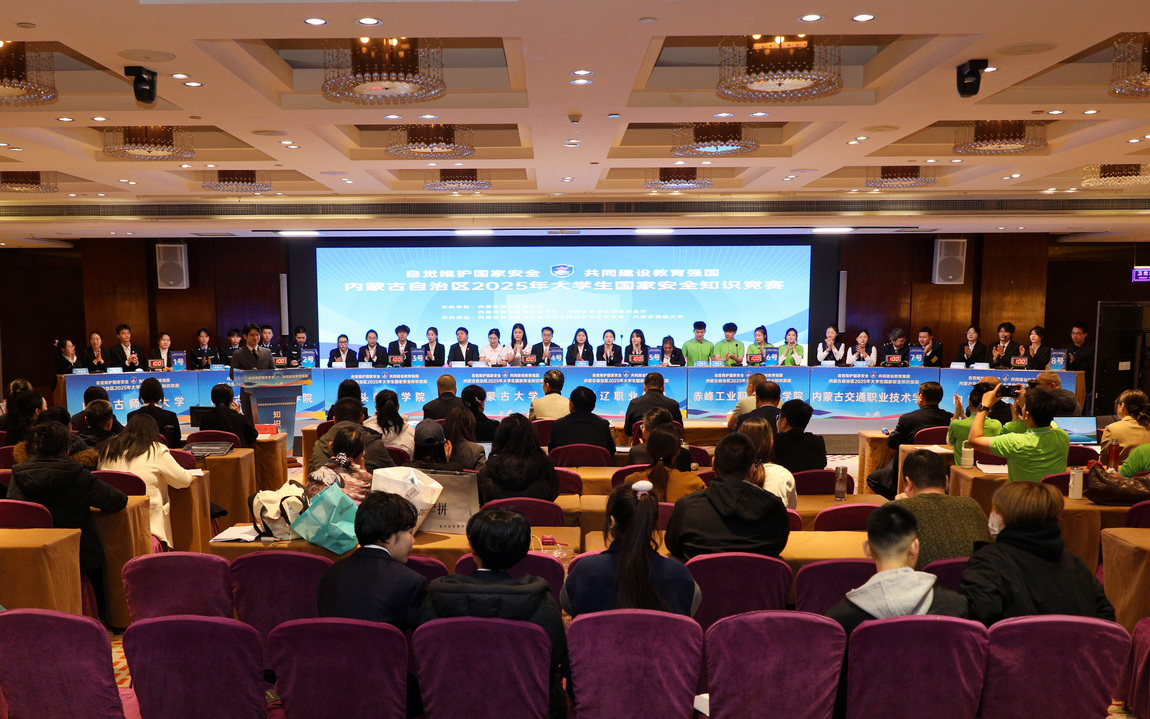 为深入贯彻落实总体国家安全观,全面展示新时代我区大学生国家安全素养,推动国家安全教育工作走深走实,3月13日—16日,全区2025年大学生国家安全知识竞赛在我校举办。自治区教育厅、自治区党委国安办、自治区国家安全厅、通辽市公安局等部门领导,自治区各高校安全部门主要负责人及各高校代表队领队、指导老师在现场观看了比赛。