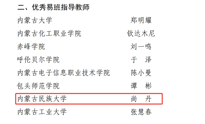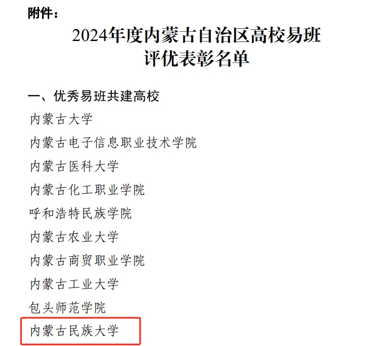 近日,2024年度内蒙古自治区高校易班评选结果公布,我校获评“优秀易班共建高校”,学生处(党委学生工作部)尚丹获评“优秀易班指导教师”,易班媒体工作站获评“优秀易班工作站”。