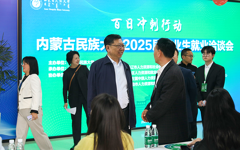5月23日上午,我校2025届毕业生就业洽谈会在霍林河校区大学生“一站式”服务中心一楼举行。校党委委员、副校长王百涛,副校长红梅,组织部部长付向阳,通辽市各旗县分管就业领导及学校各学院党委书记到场指导。