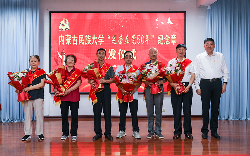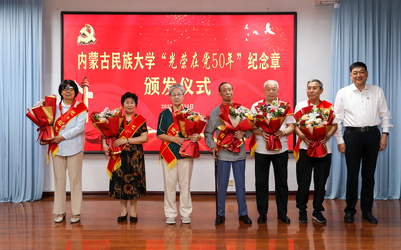 6月30日上午,在中国共产党成立104周年来临之际,我校在老干部活动中心多功能厅举行“光荣在党50年”纪念章颁发仪式。校党委书记赵东海,校党委副书记、校长孟祥宏,校党委副书记王烨辉,党委组织部、宣传部、统战部,党政办公室、离退休工作处主要负责同志参加仪式。孟祥宏主持仪式。