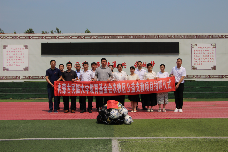 随后,全体党员来到庆和学校举行内蒙古民族大学教育基金会农牧区公益支教项目捐赠仪式。在捐赠仪式上,白金英代表学校教育基金会向庆和学校捐赠图书84套、球类18个。庆和学校校长王浩然表示将切实管好、用好受赠物品,使其发挥最大作用,服务于教育教学工作,进一步为广大教师及学生营造良好的工作学习环境。